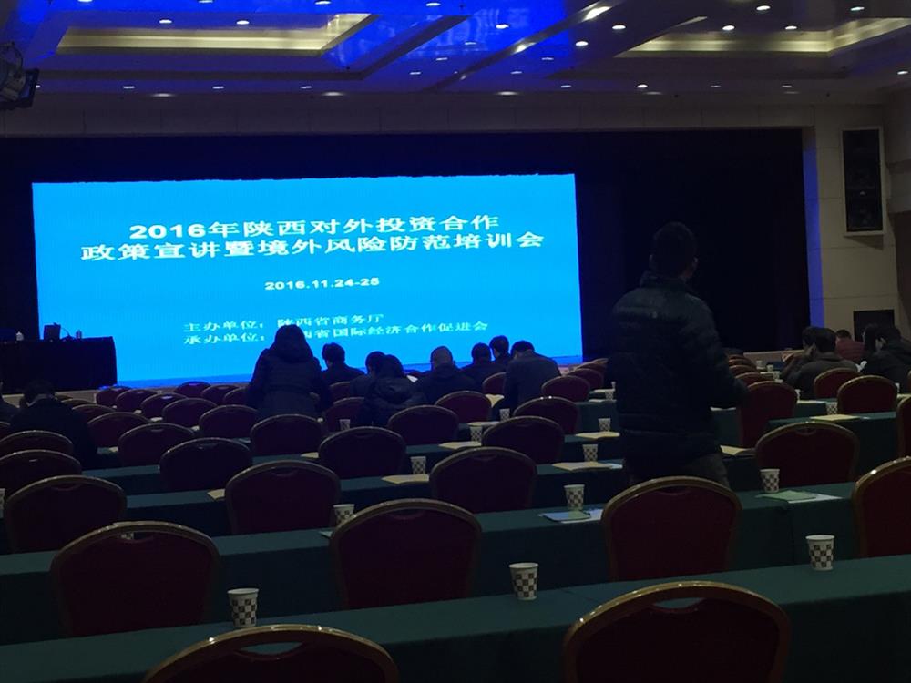 随着我省“走出去 ” 企业参与国际竞争的步伐不断加快,我省对外投资规模不断扩大,对外合作方式不断创新。同时企业“走出去 ”所面临的政治、经济、安全等风险日趋复杂 ,局部地区风险日益加剧。为促进我省企业顺利开展对外投资合作业务 ,增强抗风险能力、提高风险管理水平 ,陕西省商务厅与陕西省国际经济合作促进会于2016年11月23日-25日联合举办了“2016年陕西对外投资合作政策宣讲暨境外风险防范培训会 ”,西安欧朗翻译公司应邀出席了此次会议,其中参会单位主要为商务主管部门业务负责人 ,对 外承包工程企业、境外投资企业、对外劳务合作企业的海外业务负责人、海外项目管理人员及境外安全管理人员,会上宣传解读了新修订的 《境外投资管理办法》和相关支持政策,此次会议邀请中国进出口银行,毕马威事务所,汇丰银行西安分行以及国际项目安全管理经验丰富的企业家授课。中铁二十局集团有限公司、中国电建西北勘测设计院、中亚能源有限责任公司等企业也进行了经验交流发言。