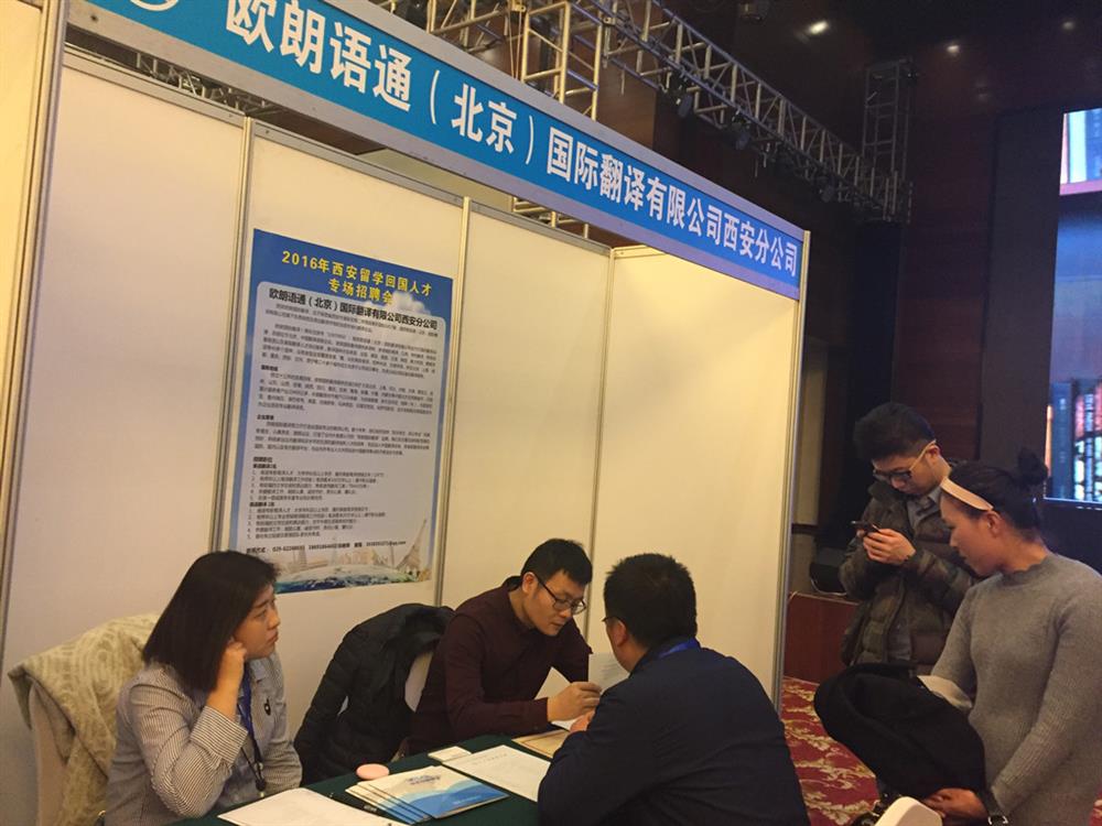 为贯彻落实中央和省、市关于引进海外高层次人才的战略部署,大力吸引科技前沿和产业高端的海外留学人才来西安创新创业,为我市重点产业发展、重点工程和项目建设引进急需紧缺人才。由西安市委组织部、西安市人力资源和社会保障局主办,“2016年西安留学回国人才专场招聘会暨交流恳谈会”12月3日在西安曲江惠宾苑召开。西安欧朗翻译公司总经理茹伟先生作为主要企业代表在上午的企业与留学生代表交流恳谈会上做了发言。下午的招聘会有60余家企业公司参会,近100多位留学生参会,此次招聘会的成功举办不仅使留学生们得到充分表现的机会,而且也让他们在以后的工作中有目的的培养自己的能力,和完善自我。